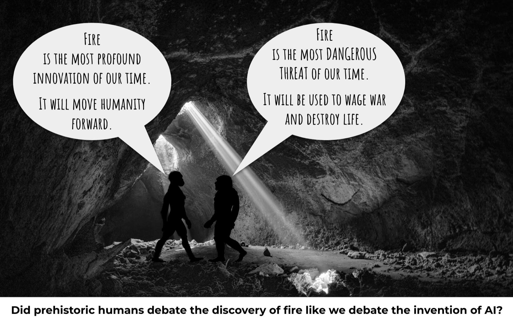 Ready or not, we’re all aboard the AI-hype train and it’s going faster than the speed of light. Fierce debates ensue from all angles and the discourse is at an all time high. Did prehistoric humans debate the implications of fire with the same intensity as we’re debating AI today?